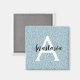 A brilho e a cintilação azul-prata brilham o nome do monograma e o ímã inicial. Personalize com seu nome personalizado em um roteiro preto elegante e seu monograma inicial em branco. Você pode alterar a cor do texto, o estilo e o tamanho da fonte usando a opção personalizar.