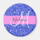 O brilho azul escuro/ marinho e brilho cor-de-rosa brilha o nome do monograma branco e o ímã inicial. Seu nome personalizado e monograma são escritos em um elegante roteiro escrito à mão com um fundo rosa. Você pode alterar a cor do texto, o estilo e o tamanho da fonte usando a opção personalizar. Um aniversário perfeito ou presente de Natal!