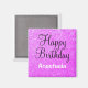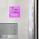 Magneta de aniversário feliz personalizada e vírgula com fundo brilhante roxo e elegante escrevendo preto e branco. Você pode adicionar facilmente o nome de sua escolha e alterar a cor e a fonte do nome usando a opção personalizar!