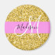 Imã Glam Pink e Glitter Dourado Sparkles Nome do Monog