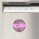 A brilho violeta púrpura brilha o nome do monograma branco e o ímã inicial. Seu nome personalizado e monograma são escritos em um elegante roteiro escrito à mão com um fundo rosa. Você pode alterar a cor do texto, o estilo e o tamanho da fonte usando a opção personalizar. Um aniversário perfeito ou presente de Natal!