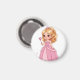 Princesa de chibi bonita com um vestido brilhante de bola rosa, coroa brilhante, cabelo louro longo, segurando uma varinha cintilante, contorno brilhante de adesivo.