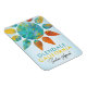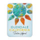Design Glendale California brilhante, colorido, 100% aprovado pela Sunshine. Cores quentes de vermelho, laranja, turquesa e aqua em um padrão de cor d'água em um bonito fundo azul sombreado.