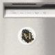 Um brilho "M" inicial de ouro vítreo numa moldura geométrica com uma abertura de cor d'água cheia de estrelas preta.