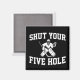O imã do tema Hockey para o goleiro de hóquei mostra um goleiro branco de hóquei em silhueta com texto branco que lê "Fechar seu buraco de cinco".