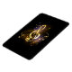 Jewelry, gold, musical treble clef with golden notes and stars on black glowing background.
