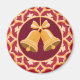 Retro-looking golden bells on a wine-red background, held in an ornate circular frame, make a festive magnet for the holidays. Great stocking stuffer!
