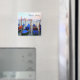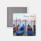 Este ímã personalizável faz o presente perfeito ou a lembrança para quem gosta de Veneza, Itália. Esta imagem mostra o Canal Giudecca visto de Sestiere San Marco, com um grupo de gondolas coberto com tarpas azuis ao lado da costa, na frente, e a Basílica San Giorgio Maggiore ao fundo.