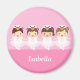 Inspirado pelos quatro pequenos cisnes do clássico balé Swan Lake, este design apresenta quatro pequenas bailarinas bonitinhas vestidas em roupas de balé de tutus branco e chapéus de cisne, realizando felizes rotinas de dança juntas. Excelente para meninas que expressam interesse em balé e dança que é gracioso e elegante. Personalize facilmente com o nome da criança.