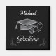 A imagem metálica de um boné de formatura e diploma, com a letra da escrita, oferece um dom, uma lembrança, um presente ou uma festa de parabéns de tendências essenciais para qualquer formatura.