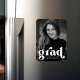 Ímanes de graduação de na moda com a foto vertical do formando com "formando" em letras brancas em negrito. Personalize o ímã de graduação de fotos adicionando o nome do formando, o ano de graduação e a escola.
