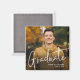 Um ímã de anúncio de graduação simples com fonte manuscrita e foto de retrato em bleed total na frente com nome e detalhes da graduação. A parte de trás é magnética. Clique no botão editar para personalizar este design.