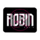 Este gráfico oferece uma reinterpretação contemporânea do emblema Robin, misturando elementos clássicos com sensibilidades modernas de design. O logótipo centra-se numa representação em negrito e geométrica da palavra "ROBIN", definida em branco estendido contra um fundo preto profundo, encapsulada num círculo rosa marcante que adiciona um contraste visual dinâmico. O círculo não só enquadra o texto como também o quebra, sugerindo o surgimento de Robin da sombra de Batman para estabelecer sua própria identidade. O uso do rosa acrescenta uma reviravolta inesperada, dando uma vibração nova e moderna enquanto ainda presta homenagem ao tradicional vermelho associado a Robin. Este design capta a essência da evolução de Robin como um personagem, misturando seu legado heroico com uma estética urbana elegante e adequada para uma nova geração de fãs.