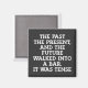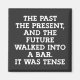 O texto dessa design diz: "O passado, o presente e o futuro entraram em bar. Era tenso."