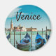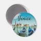 Uma vista maravilhosa de Veneza (Itália) e do Grande Canal. Nesta imã de geladeira, vocês podem ver algumas Gondolas azuis elegantes, o famoso barco que é um dos símbolos mais icônicos de Veneza.
