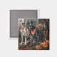 Libere o espírito assustador com esta design sombria do Dia das Bruxas apresentando um bando de cachorros sob um céu escuro e iluminado, cercado por morcegos voadores e abóboras brilhantes. Perfeito para aqueles que amam um toque de diversão terrível com seus amigos peludos!
