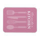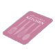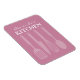 Grande imã de geladeira personalizada com utensílios de cozinha. Fundo de cor rosa ou personalizado. Tipografia elegante com faca, uísque, espátula e colher. Festa bonitinha para a festa de janto.