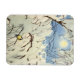 Great Tit by Norwegian artist Theodor Severin Kittelsen. Watercolor painting of a cute yellow parus major bird on a snowy tree branch in winter time while the sun is breaking through on a clear blue sky.