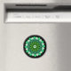 Esta design apresenta um arranjo concêntrico, semelhante a mandala ou caleidoscópio, que se parece com folhas verdes sobre fundo preto.