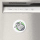 Este ímã apresenta um desenho caneta de um ouriço bonitinho com um sorriso no seu rosto e muita energia. Atrás do bosque há um círculo verde.