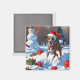 Imã Greyhound correndo em neve com chapéu de Natal