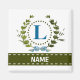 Uma delicada grinalda de hera com um arco azul listrado é sobreposta a um fundo branco fresco. O design apropriado para casamento apresenta o monograma "L" em azul. O ímã pode ser personalizado com qualquer nome sobre a faixa de fita verde. Dica de design: Para a fonte mostrada aqui, use letras maiúsculas para o nome.