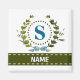 Uma delicada grinalda de hera com um laço listrado azul é sobreposta a um fundo branco fresco. O design apropriado para casamento apresenta o monograma "S" em azul. O ímã pode ser personalizado com qualquer nome sobre a faixa de fita verde. Dica de design: Para a fonte mostrada aqui, use letras maiúsculas para o nome.
