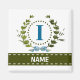 Uma delicada grinalda de hera com um laço azul listrado é sobreposta a um fundo branco fresco. O design apropriado para casamento apresenta o monograma "I" em azul. O ímã pode ser personalizado com qualquer nome sobre a faixa de fita verde. Dica de design: Para a fonte mostrada aqui, use letras maiúsculas para o nome.