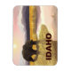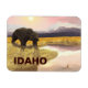 Uma pintura digital de um urso pardo se aproximando de uma lagoa enquanto o sol desce sobre montanhas distantes. Também está presente a leitura de texto "Idaho".