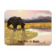 A digital painting of a grizzly bear approaching a pond while the sun descends over distant mountains. Customize by adding your own text.