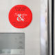 Vermelho romântico com texto em branco e preto. Salve as Revistas de Casamento de Data. Personalize com os primeiros nomes e a data de casamento da noiva e do noivo. É um prazer enviar seus convidados para colocar na geladeira ou em outra superfície magnética como um bom lembrete da próxima data do casamento. Design por TamiraZDescarnece. Visite a minha loja para a suíte de convite de casamento.
