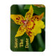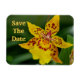 Avise seus amigos e família sobre sua data de casamento com este incrível ímã de orquídea amarela e vermelha. Personalize-o para esse toque único.