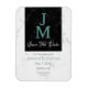 Anuncie a data do seu casamento com este elegante monograma teal em Imã salve a data de mármore branco e preto. Todos os itens são personalizáveis: data, nomes, cidade e estado. Mande a parentes e amigos.