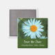 guarde a data, íman verde de flor branca para um anúncio de casamento, convite.