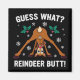 Playful Christmas humor featuring a reindeer bending forward and looking upside down between its legs. A fun festive scene with winter charm and lighthearted holiday spirit.