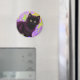 Magnet com um gatinho preto Gustav Klimt! Esta beleza de olhos largos se coloca num campo verde de flores roxas. Um presente pensativo para amantes de gatos e entusiastas de arte austríacos!