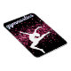Esta design de ginástica feminina tem um fundo preto sólido com pistas cor-de-rosa de brilho falso e uma silhueta de ginástica saltando para o ar.