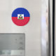 Bandeira do Haiti. A bandeira do Haiti consiste em dois bares horizontais, azuis sobre vermelhos, defrontados por um painel branco com a casaco de armas haitiana. O casaco de armas representa um troféu de armas prontas para defender a liberdade e uma palma real para a independência. A palma é tocada pelo Boné da Liberdade. O lema está em um pergaminho branco lendo L'Union Fait La Force ("Unity Faz Força.")