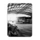 The black and white urban image of Halle Train Station in Flemish Brabant, Belgium captures the timeless beauty of the modern architecture, with light and shadow creating a dramatic interplay. The parked bicycle and the wheels of vehicles add a sense of movement to the stillness of the scene, while the monochrome palette enhances the moody atmosphere and urban charm. Modern Street photography and a great souvenir magnet.