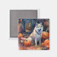 Imã Halloween Alaskan Malamute Com Pumpkins Assustado