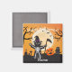 Ceifador engraçado e assustador com uma lanterna de gato e um fantasma de gato no cemitério na noite de Halloween. Um presente excelente de Halloween para amantes de gatos.