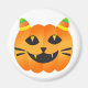 Jack-o-Lanterna humorístico curvado como um gato com orelhas únicas feitas de milho doce de barriga gelada. Um presente excelente de Halloween para amantes de gatos.