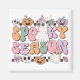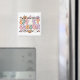 Estilo retrô feminino, bonito, divertido e colorido Halloween Fantasmas Spooky Season Magnet com fantasmas vestindo óculos de sol e bruxas, abóboras, flores e crânios, e texto de melão, lavanda, rosa e chalé que lê Spooky Season!