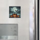 O ímã é mostrado com uma abóbora e impressão de morcegos assustadores do Halloween. Personalize este item ou comprar como está. Imagem licenciada