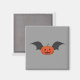 Uma ilustração de um bonitinho desenho animado morcego de abóbora laranja de halloween com asas pretas. Esta design de criatura mágica é uma ideia de presente para amantes mágicos ou feitiços e amantes do trick.
