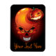 Crânio assustador e assustador do Halloween e Jack O'Lantern Pumpkin no fundo negro. Design Copyright BluedarkArt.