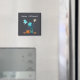 Um imã uma legal cena assustadora de halloween. Um fantasma azul gelado flutua no ar. Uma velha árvore morto tem uma coruja sentada em seus galhos e um morcego pendurado de cabeça para baixo. Uma mão está ascensão de uma sepultura antiga. Os morcegos estão voando ao redor de um cheio luando. Alguns doces estão cheios de dentro de brim, uma abóbora com milho doce espalhado. Um crânio paira no ar. Colocado sobre um fundo preto.