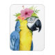 "Tropical Halo II" de Grace Popp. Possui uma ave Macaw vestindo uma flor de hibisco.