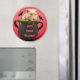 Uma foto adorável de um martelo bonitinho sentado em uma caldeirada com morcegos voando ao redor, aparece neste ímã redondo de Halloween. Com a mensagem, "Feliz Halloween Hammie", faz deste um ímã bonito para decorar a sua casa ou escritório para as férias. Faz um belo presente também!