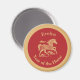 This red magnet can help you celebrate the Chinese Lunar New Year of 2026, which is the zodiac Year of the Horse. Commemorate the prosperity and good fortune of the year with this gold look scrollwork horse and clouds on a deep red background, encircled in gold. The phrase "Year of the Horse" appears in a festive typeface, but you can edit the text, such as replacing with your monogram, as long as it fits within the design The background is dotted with a golden pattern of auspicious, or lucky, clouds on red.